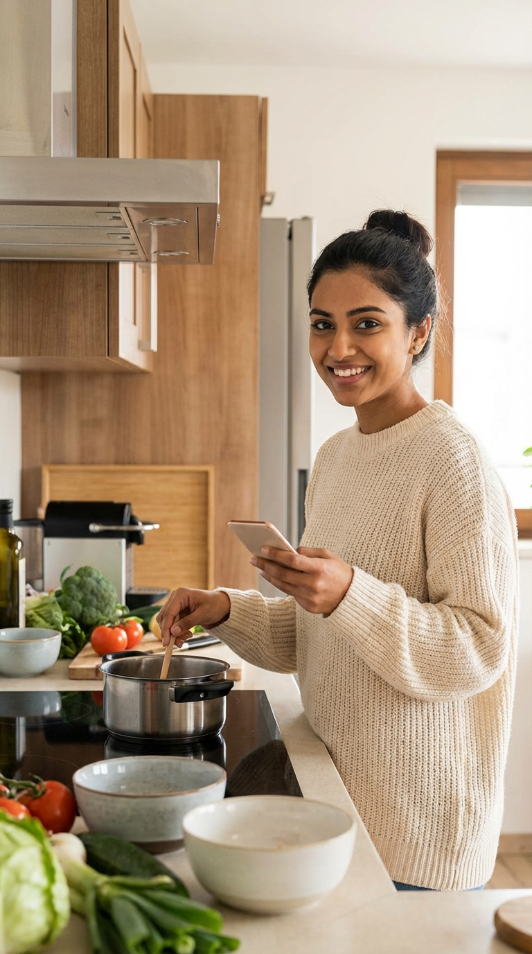 Creates recipe videos and product demos for food and beverage brands, grocery delivery apps, and cookware brands. Specializes in home-cooking tutorials, Indian-inspired weeknight meals, and kitchen tool reviews.